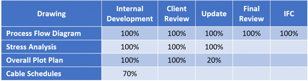 1- These are some of the statements that we came across when PMS gets discussed on Projects and many professionals get excited and try to coerce others to accept what they say. But how true are these statements? To discuss the matter in detail, let’s consider the following examples: There are 4 Engineering drawings / documents to be developed. The Engineering team updates the earned progresses and sends to the Planner, same as the table below: